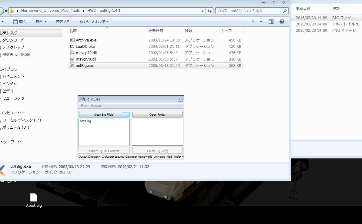 ↑ツールとして入手しておいたHW2 – unfBig 1.4.1のunfBig.exeを使用し、